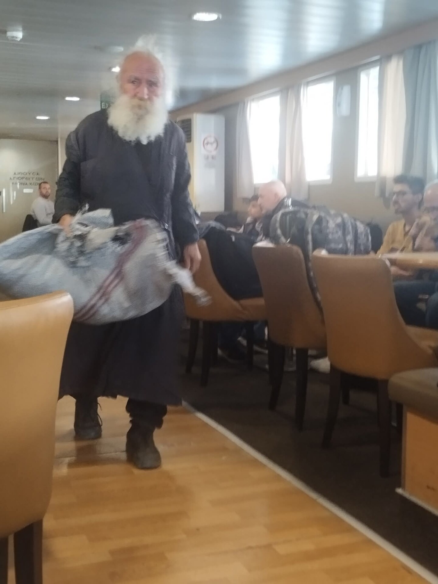 Ο Πάτερ Σιλουανός περνάει το μεγαλύτερο μέρος της ημέρας πάνω στα διάφορα καράβια που μεταφέρουν προσκυνητές στο Άγιο Όρος εδώ και δεκαετίες.
