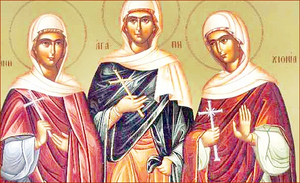 16 Απριλίου: Αγίες Αγάπη, Ειρήνη και Χιονία – Ήταν και οι τρεις αδελφές και πνευματικά βλαστάρια της Εκκλησίας της Θεσσαλονίκης.