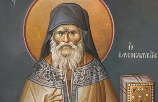 Χαῖρε καί εὐφραίνου Σκήτη λαμπρά, Καυσοκαλυβίων, ἐν σοί ηὔγασεν ἀληθῶς, ἄστρον καταυγάσαν, τήν οἰκουμένην πάσαν, καί πάντας ἀφυπνίζων, πρός βίον κρείττονα.