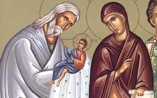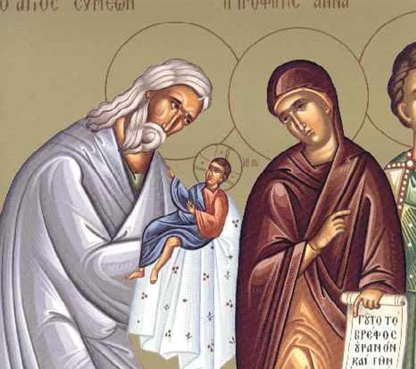 3 Φεβρουαρίου: Δίκαιος Συμεών ο Θεοδόχος και Άννα η Προφήτιδα – Ο Συμεών κατοικούσε στην Ιερουσαλήμ. Ήταν δίκαιος, ευλαβής και φωτισμένος από το Άγιο Πνεύμα, που του είχε φανερώσει ότι δε θα πέθαινε πριν δει το Χριστό. Η χαρμόσυνη αυτή πληροφορία τον εμψύχωνε ως τα βαθειά γεράματα του. Τέλος, ακριβώς σαράντα μέρες μετά τη γέννηση του Ιησού, το Πνεύμα τον πληροφόρησε ότι έπρεπε να πάει στο Ιερό. Ετοιμάστηκε, λοιπόν, με νεανική ζωηρότητα, πήγε εκεί και στάθηκε στην πόρτα, γεμάτος ευχαρίστηση και αγαλλίαση. Μέσα στην προσδοκία αυτή, φάνηκαν να έρχονται ο Ιωσήφ με την Παρθένο, που κρατούσε τον Ιησού.