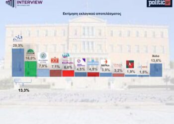 Δημοσκόπηση Interview: Πρωτιά της ΝΔ με 29,3%, στο 3% ο ΣΥΡΙΖΑ