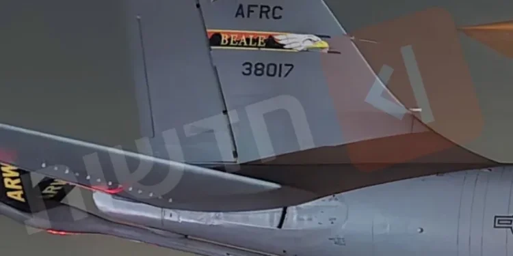 Φωτογραφίες από το κάθετο φτερό του KC-135 που ενεπλάκη στο δυστύχημα με το έτερο KC-135 στο Ιράκ επιβεβαιώνουν την ανακοίνωση.