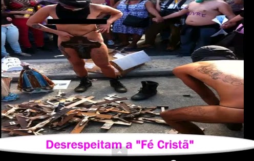Άλλες εικόνες από τις παρελάσεις που εμφανίζονται στη σελίδα του Facebook ενός Βραζιλιάνου γερουσιαστή δείχνουν και άλλες περιπτώσεις βεβήλωσης των χριστιανικών συμβόλων. Μία φωτογραφία δείχνει δύο γυμνές ομοφυλόφιλες σε ένα σταυρό να φιλιούνται. Μια άλλη δείχνει δύο άτομα που φαίνεται να είναι ένας άνδρας και μια γυναίκα που κάθονται γυμνοί στην κορυφή των πασσάλων του Εσταυρωμένου, με εικόνες να καλύπτουν τα γεννητικά όργανά τους.