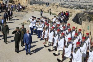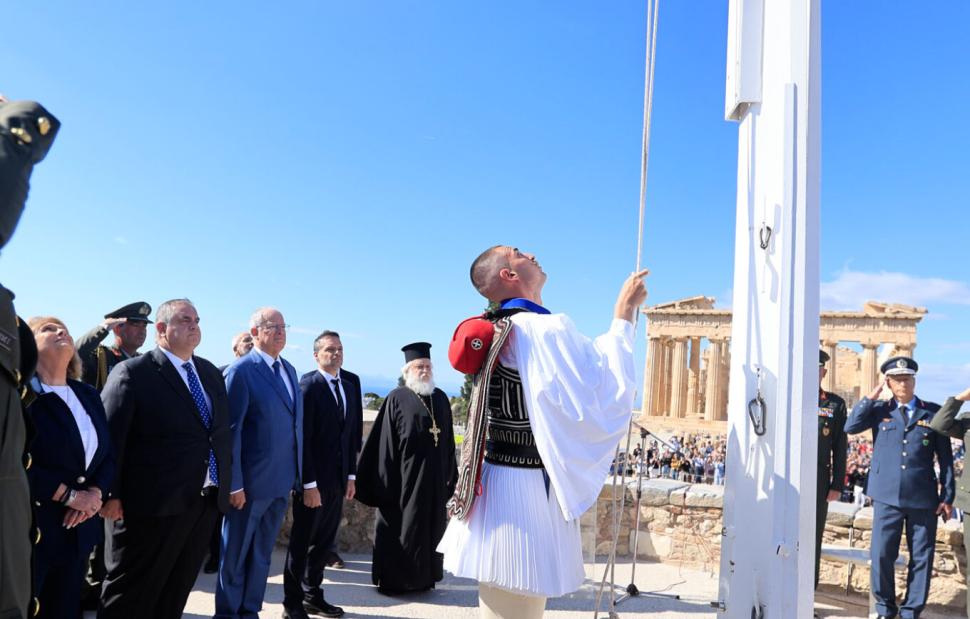 Ανάμεσά τους και ο πρόεδρος της Ελληνικής Δημοκρατίας, Κωνσταντίνος Τασούλας που παρέστη στην ανάκρουση του Εθνικού Ύμνου και στην έπαρση της Σημαίας.