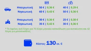 2. Χορηγείται Ψηφιακή Κάρτα Καυσίμων για στήριξη απέναντι στην αύξηση των τιμών της βενζίνης – θα χρησιμοποιείται σε πρατήρια, ΜΜΜ και ταξί. Η μεσοσταθμική στήριξη είναι στα 36 λεπτά/λίτρο – σε μέση μηνιαία κατανάλωση 70 λίτρων, 50 ευρώ το δίμηνο στην ηπειρωτική χώρα και 60 ευρώ στα νησιά.
