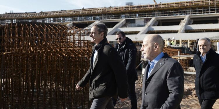 Αυτοψία στα έργα που βρίσκονται σε εξέλιξη για την ανέγερση του γηπέδου του Παναθηναϊκού στον Βοτανικό πραγματοποίησε σήμερα ο πρωθυπουργός Κυριάκος Μητσοτάκης συνοδευόμενος από τον πρόεδρο της ΠΑΕ Παναθηναϊκός Γιάννη Αλαφούζο και τον δήμαρχο Αθηναίων Χάρη Δούκα