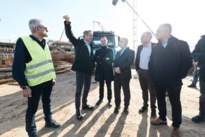 » Οπότε, προσβλέπουμε στην τήρηση των χρονοδιαγραμμάτων. Να ευχαριστήσω την κοινοπραξία και όλους τους εργαζόμενους, όπως βλέπετε είναι σημαντικός αριθμός απασχολούμενων στο έργο αυτό, θα αυξηθεί ακόμα περισσότερο τους επόμενους μήνες, και προσβλέπουμε στην παράδοση του έργου, όπως έχει συμφωνηθεί, τον Μάιο του 2027. Χρόνια πολλά, καλή χρονιά σε όλες και όλους».