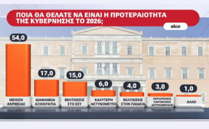 Η μείωση της ακρίβειας είναι αυτό που θα πρέπει πρώτα να απασχολήσει την κυβέρνηση λέει το 54% των ερωτηθέντων.