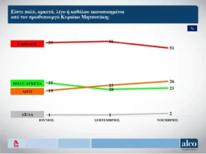 Η δημοσκόπηση έγινε από την Alco το διάστημα μεταξύ 29/10 με 2/11 σε δείγμα 1.000 πολιτών
