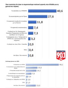 Το σκάνδαλο του ΟΠΕΚΕΠΕ με 40,6% αποτυπώνεται ως το σημαντικότερο πολιτικό γεγονός του 2025, ακολουθούμενο από τις πανελλαδικές συγκεντρώσεις των Τεμπών με 27,6%.