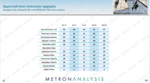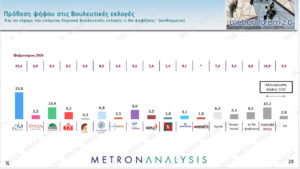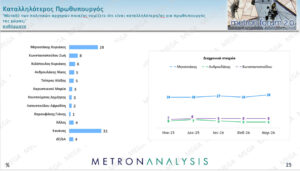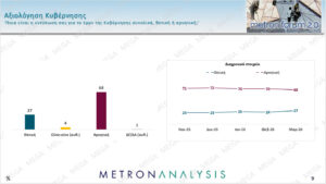 Δημοσκοπική άνοδο για τη Νέα Δημοκρατία, τον Πρωθυπουργό και την Κυβέρνηση καταγράφει η δημοσκόπηση της Metron Analysis που παρουσιάστηκε στο κεντρικό δελτίο του MEGA