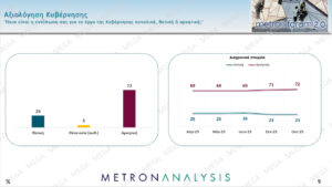 Τη δυσαρέσκεια της κοινής γνώμης για τους κυβερνητικούς χειρισμούς αποτυπώνουν τα ευρήματα της δημοσκόπησης της Metron Analysis για το MEGA.
