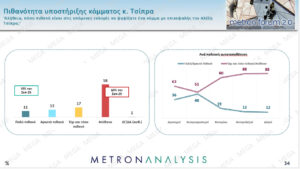 Στην πρόθεση ψήφου ωστόσο η ΝΔ βρίσκεται στο 20,9%, σχεδόν μία μονάδα κάτω από τα ποσοστά του προηγούμενου μήνα, με το ΠΑΣΟΚ να είναι δεύτερο με μονοψήφιο ποσοστό (9,3%). Ποσοστό μήνυμα στην κυβέρνηση από την κοινωνία.