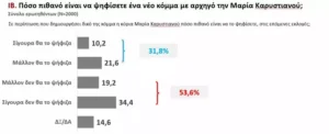 31,8% δηλώνει ότι θα ψήφιζε κόμμα με αρχηγό τη Μαρία Καρυστιανού