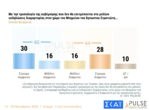 Για τις προϋποθέσεις που θέτει ο Πρωθυπουργός, για τη συμμετοχή της Τουρκίας στο πρόγραμμα SAFE, το 60% δήλωσε ότι είναι μια επαρκής κίνηση…