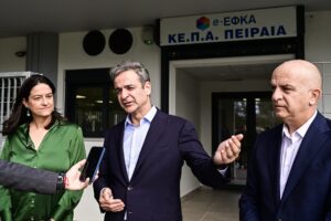 Ο Πρωθυπουργός, συνοδευόμενος από την υπουργό Εργασίας και Κοινωνικής Ασφάλισης Νίκη Κεραμέως, ξεναγήθηκε από τον Διοικητή του e-ΕΦΚΑ Αλέξανδρο Βαρβέρη στους χώρους του ΚΕΠΑ Πειραιά και ενημερώθηκε για τη σημαντική επιτάχυνση του ρυθμού εξέτασης των αιτημάτων με αποτέλεσμα τον τελευταίο ενάμιση χρόνο να μειωθούν τα εκκρεμή ραντεβού κατά 76%.