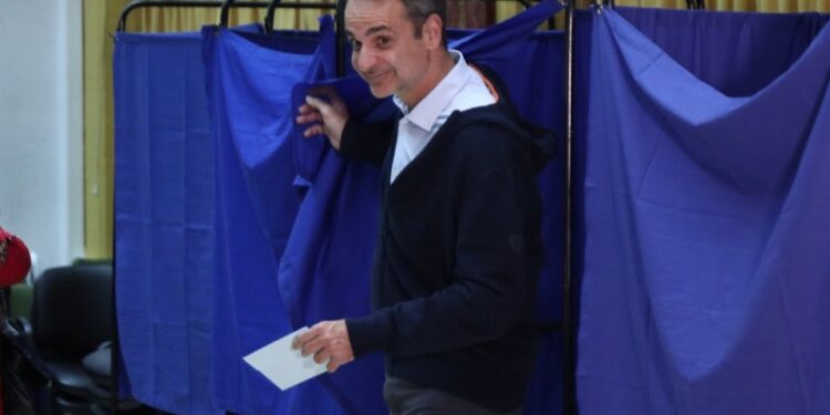 Ο πρόεδρος της ΝΔ, Κυριάκος Μητσοτάκης, ψήφισε γύρω στις 18:00 στα Κάτω Πετράλωνα, μαζί με τον γιο του Κωνσταντίνο.