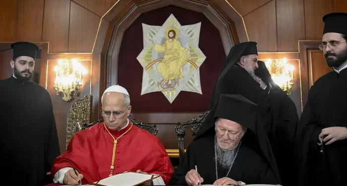 Ο Πάπας Λέων ΙΔ’ και ο Οικουμενικός Πατριάρχης Βαρθολομαίος παρέστησαν στη Δοξολογία στον Πατριαρχικό Ναό του Αγίου Γεωργίου στο Φανάρι, ενώ στη συνέχεια υπέγραψαν την Κοινή Δήλωση στην Αίθουσα του Θρόνου του Πατριαρχικού Οίκου.