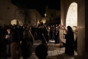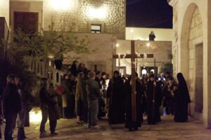 Ο Κυριάκος Μητσοτάκη και η Μαρέβα Γκραμπόφσκι παρακολούθησαν την Ακολουθία του Επιτάφιου θρήνου στον ναό της Μονής που είναι αφιερωμένος στη Μεταμόρφωση του Σωτήρος , αλλά εορτάζει και στην εορτή της Αγίας Κυριακής και βρίσκεται περίπου 12 χιλιόμετρα από τα Χανιά.
