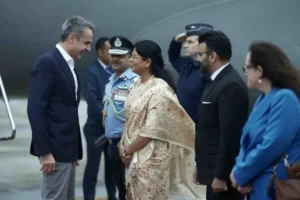 Στην Ινδία έφτασε το μεσημέρι της Τετάρτης για το AI Impact Summit 2026 ο πρωθυπουργός, Κυριάκος Μητσοτάκης, τον οποίο υποδέχθηκε με μία θερμή χειραψία στο Bharat Mandapam ο πρωθυπουργός της Ινδίας, Ναρέντρα Μόντι