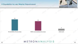 Η Μαρία Καρυστιανού εμφανίζει δημοφιλία 50%, ενώ η πιθανότητα ψήφου σε κόμμα με επικεφαλής την ίδια αυξάνεται στο 16%.