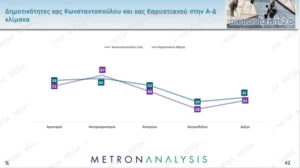 Η Metron Analysis μέτρησε και το «δίδυμο» Καρυστιανού – Κωνσταντοπούλου, με την πρόεδρο της Πλεύσης Ελευθερίας να προηγείται μόνον στην ομάδα των ψηφοφόρων που δηλώνουν «κεντροαριστεροί» και την Μαρία Καρυστιανού να την προσπερνά με διαφορά τόσο στους αριστερούς, όσο και στους κεντρώους και τους κεντροδεξιούς. Η διαφορά τους ωστόσο μειώνεται σε μόλις 4 μονάδες μεταξύ εκείνων που δηλώνουν «δεξιοί». Έχει ενδιαφέρον ότι υπερδιπλασιάστηκε μέσα σε έναν μήνα το ποσοστό εκείνων που δηλώνουν ψήφο στα «λοιπά» κόμματα ( από 4,6% στο 9,5%) κάτι που υποδηλώνει προσμονή για τη δημιουργία νέων σχημάτων.