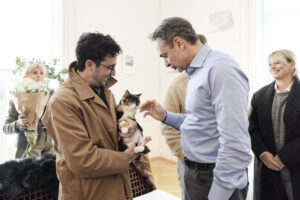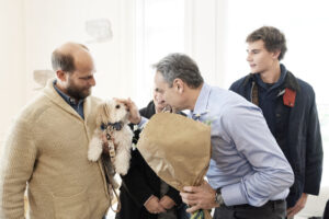 Έλληνες πολίτες που επαναπατρίστηκαν από τη Μέση Ανατολή μαζί με τα ζώα συντροφιάς τους, μέσω της ειδικής πτήσης που οργάνωσε το Υπουργείο Εξωτερικών σε συνεργασία με την Aegean, υποδέχτηκε σήμερα ο Πρωθυπουργός Κυριάκος Μητσοτάκης στο Μέγαρο Μαξίμου