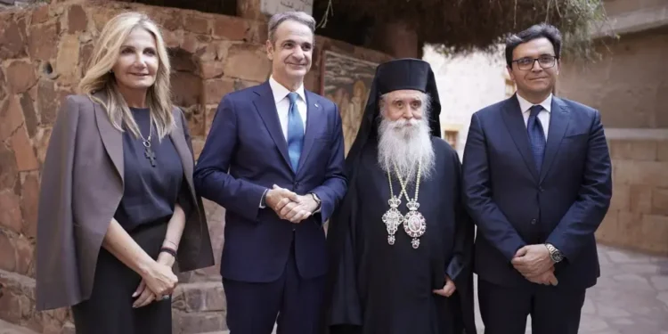 «Η Ελλάδα παρούσα και αρωγός σας, στεκόμαστε πάντα δίπλα σας για να διαφυλάξουμε στην αιωνιότητα το ιδιαίτερο και ξεχωριστό καθεστώς που μας κληροδοτήθηκε από τους προγόνους μας» είπε μεταξύ άλλων ο Κυριάκος Μητσοτάκης, στην τελετή ενθρόνισης του νέου Αρχιεπισκόπου Σινά, Φαράν και Ραϊθώ και Ηγουμένου της Ιεράς Μονής Αγίας Αικατερίνης Όρους Σινά, κ. Συμεών