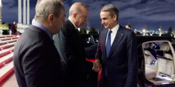 Ο Πρωθυπουργός Κυριάκος Μητσοτάκης και η σύζυγός του Μαρέβα Γκραμπόφσκι – Μητσοτάκη παρέστησαν απόψε στην τελετή απονομής του διεθνούς βραβείου αρχιτεκτονικής Pritzker στον Σερ David Alan Chipperfield, στην Αρχαία Αγορά.