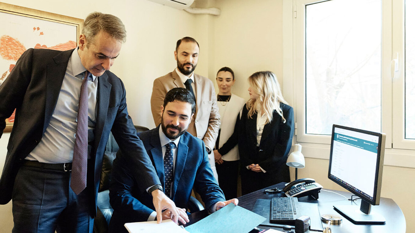 Σε βίντεο ο Κυριάκος Μητσοτάκης εμφανίζεται να περπατά και να μπαίνει σε ένα δικηγορικό γραφείο και εκεί να του εξηγούν πως μία διαδικασία που θα έπαιρνε δύο ημέρες, τώρα, με τη νέα τεχνολογία θα χρειάζεται μερικά λεπτά.