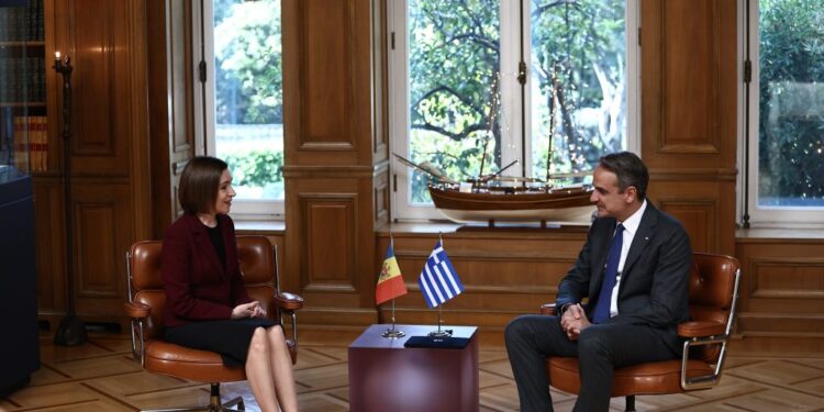 Ο Κυριάκος Μητσοτάκης υποδέχθηκε στο Μέγαρο Μαξίμου την Μολδαβή πρόεδρο, Μάια Σάντου, επιβεβαιώνοντας την δυναμική σχέση των δύο κρατών, ενώ υπογράμμισε ότι η ένταξη της Μολδαβίας στην Ευρωπαϊκή Ένωση αποτελεί στρατηγική προτεραιότητα για την Ελλάδα
