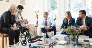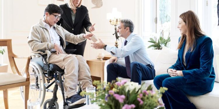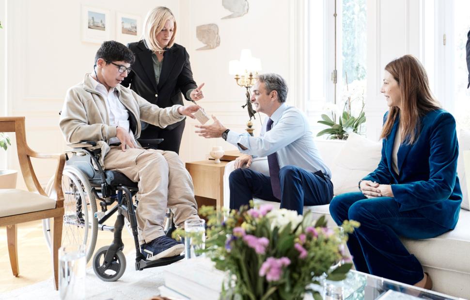 Mε τον μαθητή της Β’ Γυμνασίου του Ειδικού Γυμνασίου-Λυκείου Αθηνών στην Ηλιούπολη Παναγιώτη συναντήθηκε σήμερα στο Μέγαρο Μαξίμου o Κυριάκος Μητσοτάκης