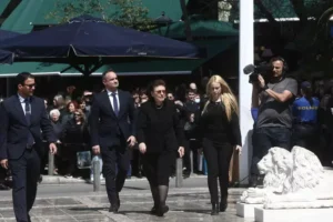 Σε κλίμα συγκίνησης και με την παρουσία του πρωθυπουργού Κυριάκου Μητσοτάκη, πλήθους κόσμου και προσωπικοτήτων από την καλλιτεχνική, πολιτική και κοινωνική σφαίρα της χώρας, τελείται η εξόδιος ακολουθία στη μνήμη της μεγάλης ερμηνεύτριας Μαρινέλλας, στην Μητρόπολη Αθηνών