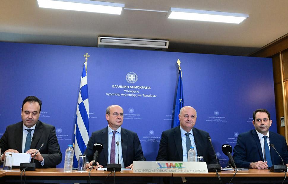 Συνέντευξη Τύπου παραχώρησαν το μεσημέρι της Τετάρτης (7/1) στα γραφεία του ΥΠΑΑΤ ο αντιπρόεδρος της Κυβέρνησης Κωστής Χατζηδάκης και οι υπουργοί Αγροτικής Ανάπτυξης και Τροφίμων Κώστας Τσιάρας και Ψηφιακής Διακυβέρνησης Δημήτρης Παπαστεργίου, καθώς και ο υφυπουργός Εθνικής Οικονομίας και Οικονομικών Θάνος Πετραλιάς, όπου εξειδίκευσαν τα μέτρα στήριξης των αγροτών