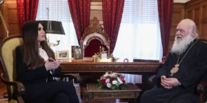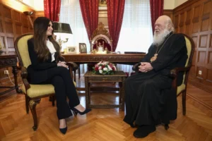 Εικόνες από τη συνάντηση της Κίμπερλι Γκίλφοϊλ με τον Αρχιεπίσκοπο Ιερώνυμο