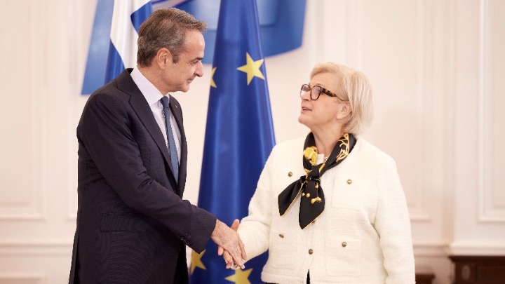 O Κυριάκος Μητσοτάκης συναντήθηκε στο Μέγαρο Μαξίμου με την Υπουργό Άμυνας της Γαλλίας Καρίν Βοτρέν.