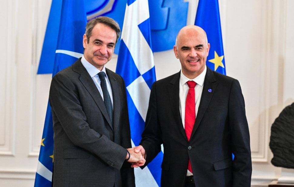 Από την πλευρά του, ο Alain Berset ευχαρίστησε τον Πρωθυπουργό για την υποδοχή, δηλώνοντας: «Σας ευχαριστώ θερμά, κ. Πρωθυπουργέ, γι’ αυτή την εγκάρδια υποδοχή σήμερα εδώ στην Αθήνα. Είναι τεράστια χαρά και τιμή που έχω την ευκαιρία να σας συναντήσω ξανά».