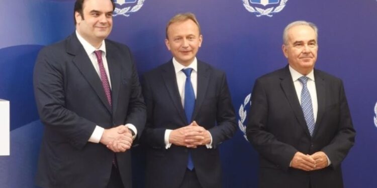 Με τον Επίτροπο της Ευρωπαϊκής Ένωσης Πιοτρ Σεράφιν, αρμόδιο για θέματα προϋπολογισμού, καταπολέμησης της απάτης και δημόσιας διοίκησης, συναντήθηκε ο υπουργός Εθνικής Οικονομίας και Οικονομικών, Κυριάκος Πιερρακάκης