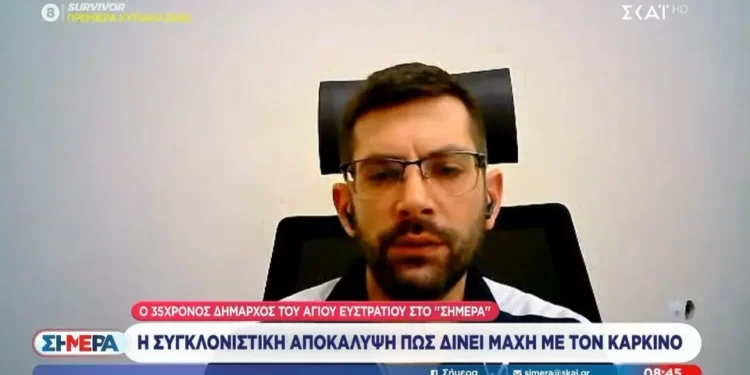 Ο δήμαρχος του Άη Στράτη μίλησε και στον ΣΚΑΪ για την απόφασή του να μιλήσει ανοιχτά για τη διάγνωσή του, εξηγώντας ότι θέλησε να στείλει ένα ξεκάθαρο μήνυμα ειλικρίνειας και δύναμης στους κατοίκους του μικρού νησιού του βορείου Αιγαίου.