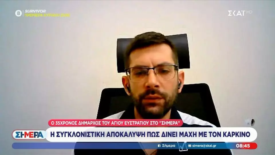 Ο δήμαρχος του Άη Στράτη μίλησε και στον ΣΚΑΪ για την απόφασή του να μιλήσει ανοιχτά για τη διάγνωσή του, εξηγώντας ότι θέλησε να στείλει ένα ξεκάθαρο μήνυμα ειλικρίνειας και δύναμης στους κατοίκους του μικρού νησιού του βορείου Αιγαίου.
