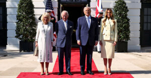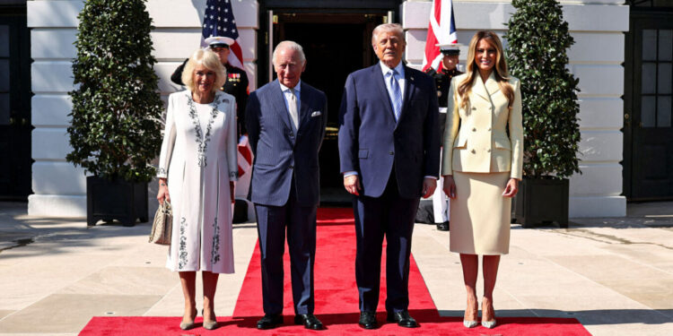 Το αμερικανικό προεδρικό ζεύγος, ο Ντόναλντ και η Μελάνια Τραμπ, υποδέχτηκαν στον Λευκό Οίκο το βασιλικό ζεύγος της Βρετανίας, τον Κάρολο και την Καμίλα, κατά την πρώτη ημέρα της τετραήμερης επίσημης επίσκεψής του στις ΗΠΑ.