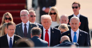 Ο Μπενιαμίν Νετανιάχου με τη σύζυγό του, Σάρα Νετανιάχου, εμφανίστηκαν στο Μπεν Γκουριόν λίγο πριν από την άφιξη του Τραμπ, συνομιλώντας με τον ειδικό απεσταλμένο των ΗΠΑ, Στιβ Γουίτκοφ, καθώς και με την κόρη του Τραμπ, Ιβάνκα, και τον σύζυγό της, Τζάρεντ Κούσνερ, ο οποίος υπήρξε καθοριστικός μεσολαβητής στη συμφωνία εκεχειρίας και απελευθέρωσης ομήρων που τέθηκε σε ισχύ την Παρασκευή.