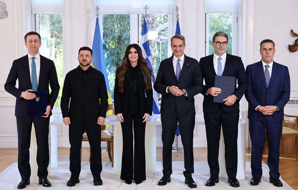 Η υπογραφή της συμφωνίας έγινε παρουσία του Κυριάκου Μητσοτάκη, του Βολοντίμιρ Ζελένσκι και της Κίμπερλι Γκιλφόιλ.