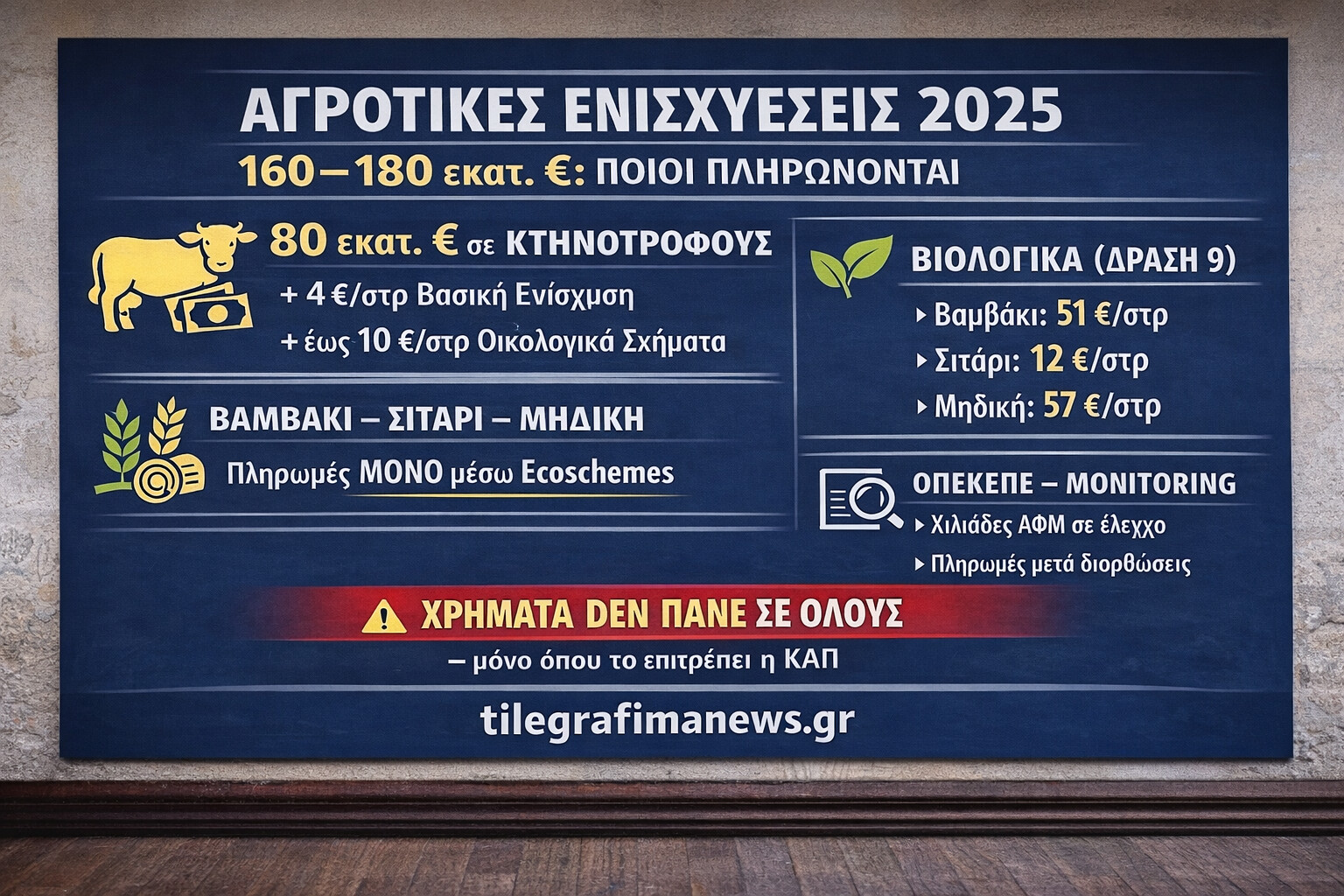 Το 2025 δεν αφήνει μεγάλα περιθώρια πολιτικών ελιγμών. Τα χρήματα υπάρχουν, αλλά η ΚΑΠ επιβάλλει στενά μονοπάτια. Οι κτηνοτρόφοι φαίνεται πως έχουν εξασφαλισμένη μια ουσιαστική ανάσα μέσω βοσκοτόπων και οικολογικών σχημάτων. Για τους αγρότες των αροτραίων, όμως, η πραγματικότητα είναι πιο σκληρή: χωρίς ένταξη στα βιολογικά, το «δεύτερο 80άρι» παραμένει περισσότερο υπόσχεση παρά βεβαιότητα.