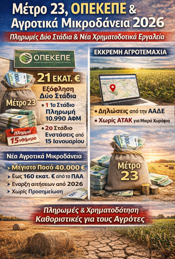 Η συνδυασμένη εφαρμογή πληρωμών του Μέτρου 23 και των νέων χρηματοδοτικών εργαλείων διαμορφώνει ένα κρίσιμο τρίμηνο για τους αγρότες. Η έγκαιρη υλοποίηση θα κρίνει εάν η στήριξη θα λειτουργήσει ως πραγματική ανάσα ή αν οι καθυστερήσεις θα συνεχίσουν να τροφοδοτούν την ανασφάλεια στην ύπαιθρο.