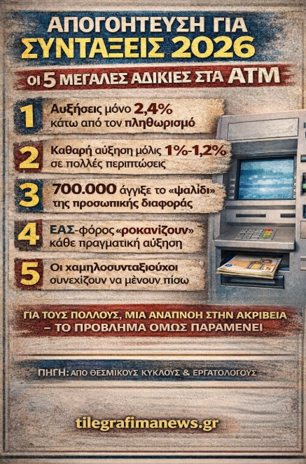 ΣΥΝΤΑΞΕΙΣ: Η εικόνα που αντίκρισαν χιλιάδες συνταξιούχοι στα ΑΤΜ τις τελευταίες ημέρες, με τις πληρωμές από e-ΕΦΚΑ και ΔΥΠΑ, επιβεβαιώνει ότι το αφήγημα των «γενναίων αυξήσεων» για το 2026 δεν ανταποκρίνεται στην καθημερινή πραγματικότητα.