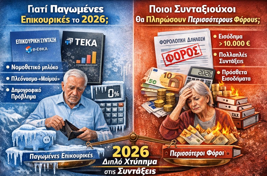ΑΣΧΗΜΑ ΝΕΑ ΓΙΑ ΤΙΣ ΕΠΙΚΟΥΡΙΚΕΣ ΣΥΝΤΑΞΕΙΣ– Ποιοι συνταξιούχοι θα πληρώσουν περισσότερους φόρους το 2026