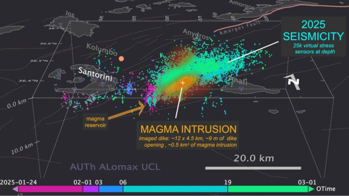 Σαντορίνη: Διεθνής ομάδα ερευνητών, ανάμεσα στους οποίους υπάρχουν και Έλληνες, αποκάλυψε τις κρυφές διεργασίες που οδήγησαν στην ιδιαίτερα ενεργή σεισμική δραστηριότητα κοντά στη Σαντορίνη στις αρχές του 2025.