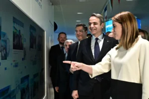 Ο πρωθυπουργός ξεναγήθηκε, μαζί με την κα Metsola και τον Ευρωπαίο Επίτροπο Βιώσιμων Μεταφορών και Τουρισμού Απόστολο Τζιτζικώστα, στις εγκαταστάσεις του κέντρου, όπου οι επισκέπτες έχουν τη δυνατότητα να ενημερωθούν, μέσα από διαδραστικές εμπειρίες και ψηφιακά εργαλεία, για τον τρόπο λειτουργίας της Ευρωπαϊκής Ένωσης, τις πρωτοβουλίες και τον ρόλο των θεσμών της και την επίδραση των ευρωπαϊκών πολιτικών στην καθημερινότητα των πολιτών, ενώ παράλληλα προσφέρονται χώροι συζήτησης και διδασκαλίας.