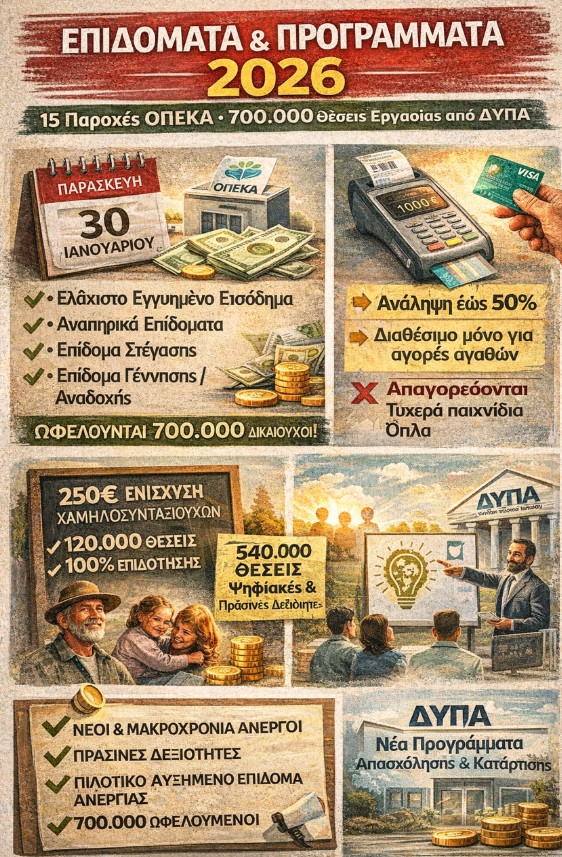 Όλα τα παραπάνω δείχνουν ότι το 2026 δεν είναι απλώς χρονιά επιδομάτων, αλλά χρονιά μετάβασης από την παροχή στην εργασία, με κεντρικό ρόλο του ΟΠΕΚΑ και της ΔΥΠΑ.